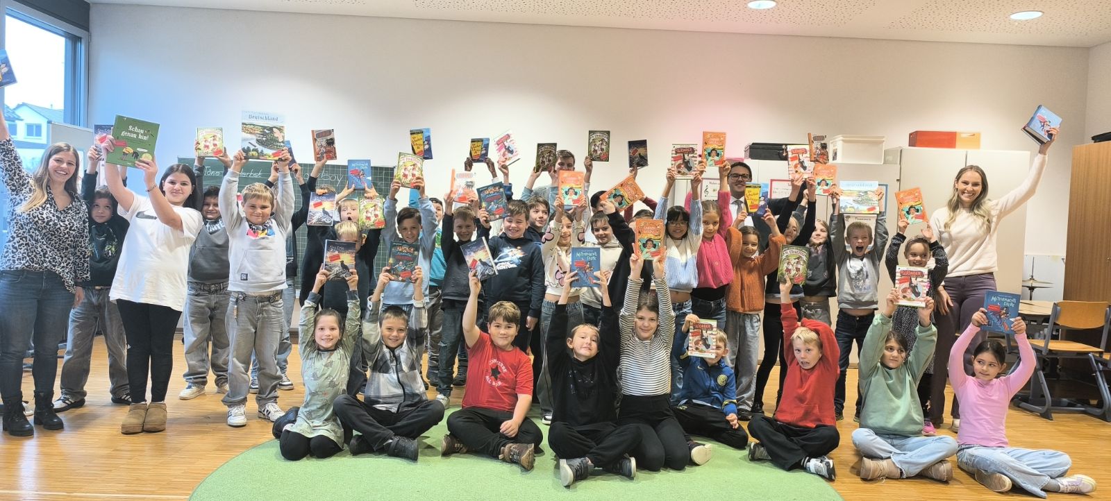Am 17. November erhielten die Klassen 3a und 3b der Grundschule am Geigersbühl für ihre Klassenbibliothek zwei sorgfältig zusammengestellte Bücherpakete der Bildungsstiftung der Kreissparkasse.