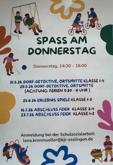 Die Anmeldung erfolgt jeweils vorab über die Schulsozialarbeit. Wir freuen uns über alle Kinder, die Lust haben mitzumachen und gemeinsam schöne Donnerstage zu erleben!