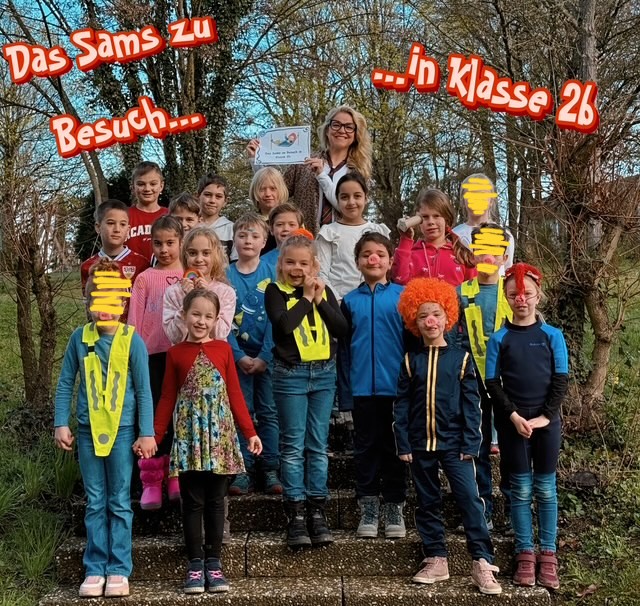 Die Klasse 2b hat sich als Belohnung für ihre gesammelten Lobsterne einen "Sams - Tag" gewünscht. Dafür durften sich die Kinder als Sams verkleiden und ihre Lehrerin, Frau Kost kam als "Herr Taschenbier". Mit samsig - lustigen Aufgaben wie Namensreime erfinden, verrückten Rechenknobeleien oder einem Sams - Zeichenkurs verging der Schultag wie im Flug... Und natürlich fehlte auch "Herr Taschenbiers' verrücktes Wünscheglas" nicht, aus dem die Mini - Samse zwischendurch witzige Wünsche ziehen und vorführen durften. Hoffentlich besucht uns das Sams bald mal wieder!